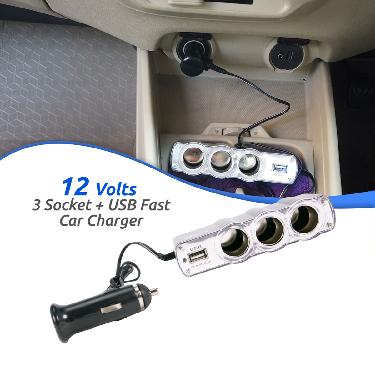 12V 3 Socket +2Fast USB Car Charger (LSSC)