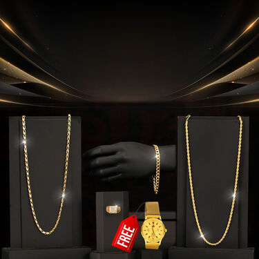 2 Golden Chain + Bracelet + Ring + Free Watch (2GCBRW18)