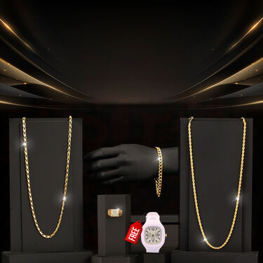 2 Golden Chain + Bracelet + Diamond Ring + Free Watch (2GCBRW15)