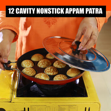 12 Cavity Nonstick Appam Patra + Steel Medu Vada Maker + Appa Chetty + Free Mini Coconut Scraper (1AP1MW2)